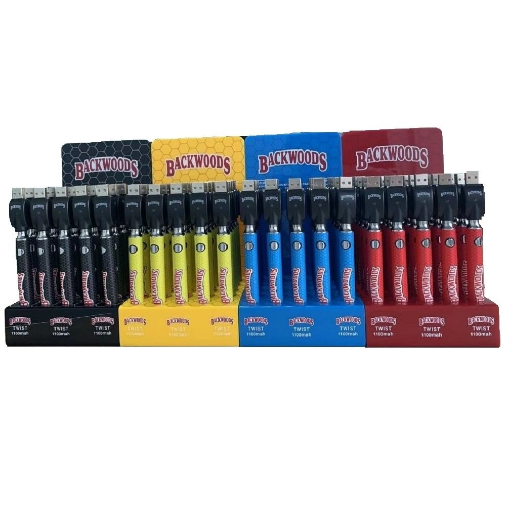 Compatible with all standard 510 and eGo devices BACKWOODS VAPE PEN FEATURES Connections. BACKWOODS TWIST DISPLAY KIT 1100MAH 30CT Login to Buy. Stainless Steel logo printing welcomed Battery Capacity.